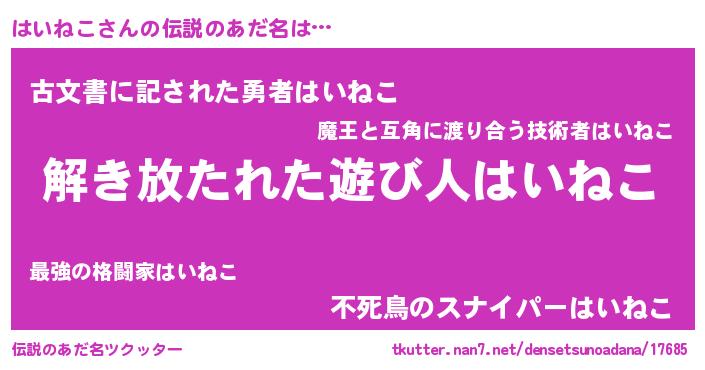 | 意味不明あだ名 | 『とにかく怪しいはいねこ』 |