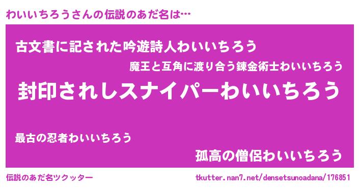 | ヒーロー風カッコイイあだ名 | 『最強戦士ワイイチロウ』『黄金騎士ワイ』 |