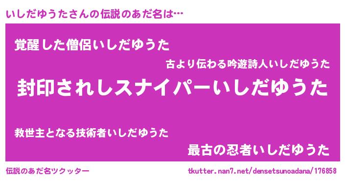 | 男性向けラノベタイトル風あだ名 | 『イシダユウタアートオンライン』 |