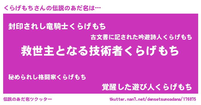 | ヒーロー風カッコイイあだ名 | 『天空の使者くらげもち』『仮面クラダー』 |