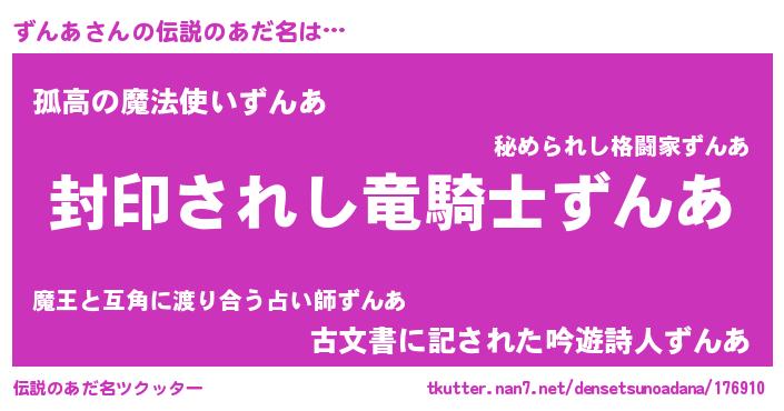 | ヒーロー風カッコイイあだ名 | 『スーパーズンア』『黄金騎士ズン』 |