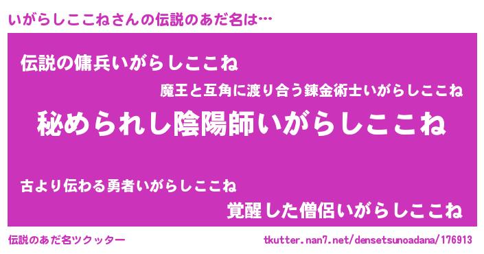 | 男性向けラノベタイトル風あだ名 | 『緋弾のイガラシココネ』 |