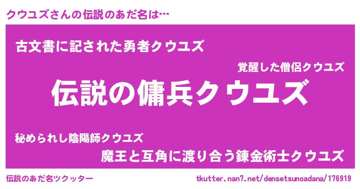 | ヒーロー風カッコイイあだ名 | 『超時空戦士クウユズ』『仮面クウダー』 |