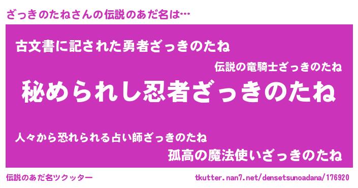 意味不明あだ名 | 『ざっきのたねフォーエバー』 |