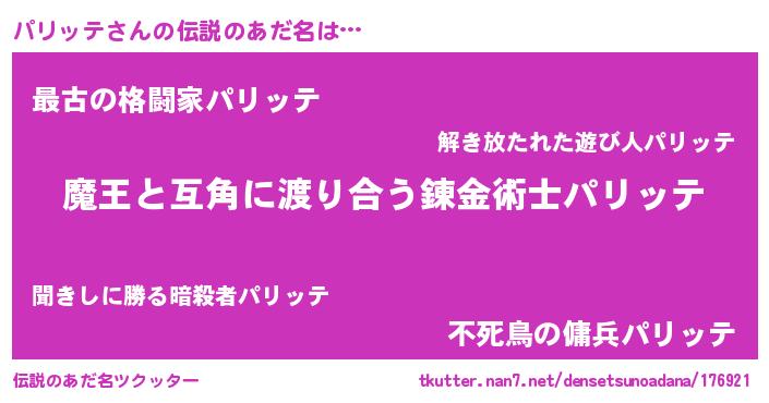 | 男性向けラノベタイトル風あだ名 | 『転生したらパリッテだった件』 |