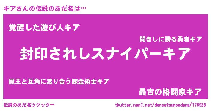 | ヒーロー風カッコイイあだ名 | 『スーパーキア』『天弓騎士キア』 |