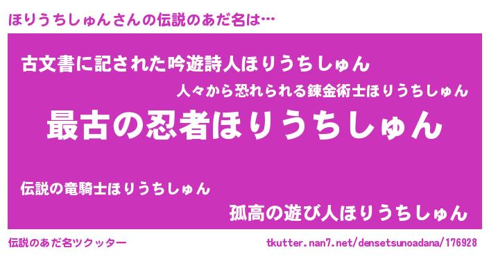 | 意味不明あだ名 | 『住所不定無職ほりうちしゅん(68歳)』 |