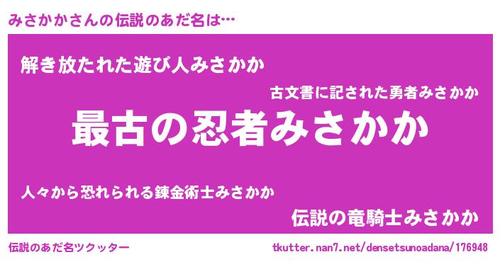 | 意味不明あだ名 | 『みさかかフォーエバー』『自称みさかか』 |