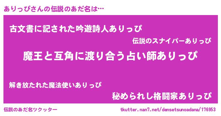 | 意味不明あだ名 | 『住所不定無職ありっぴ(47歳)』 |