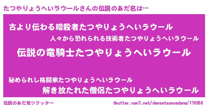 | 男性向けラノベタイトル風あだ名 | 『たつやりょうへいラウールの憂鬱』 |