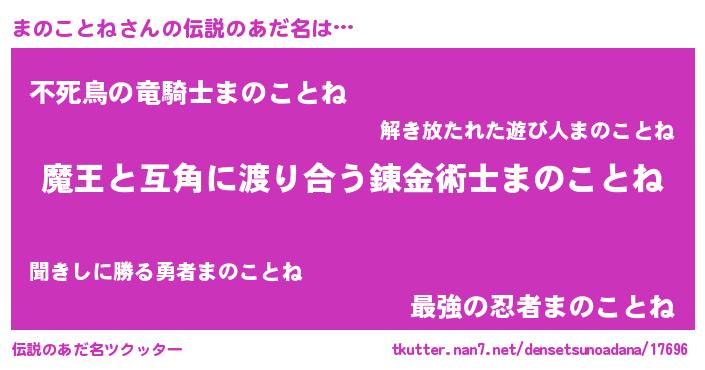 | 意味不明あだ名 | 『住所不定無職まのことね(79歳)』 |