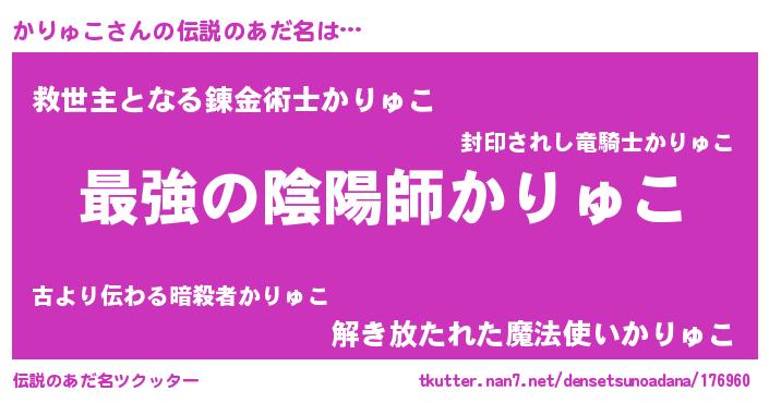 | 意味不明あだ名 | 『自称かりゅこ』『かりゅこフォーエバー』 |