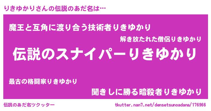 | 胡散臭い通販商品みたいなあだ名 | 『必ず成功する霊験あらたかなお札…その名も「りきゆかり」』 |