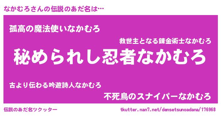 | 男性向けラノベタイトル風あだ名 | 『ナカムロスレイヤー』 |