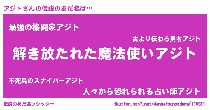 | ヒーロー風カッコイイあだ名 | 『魔戒騎士アジ』『究極戦士アジト』 |