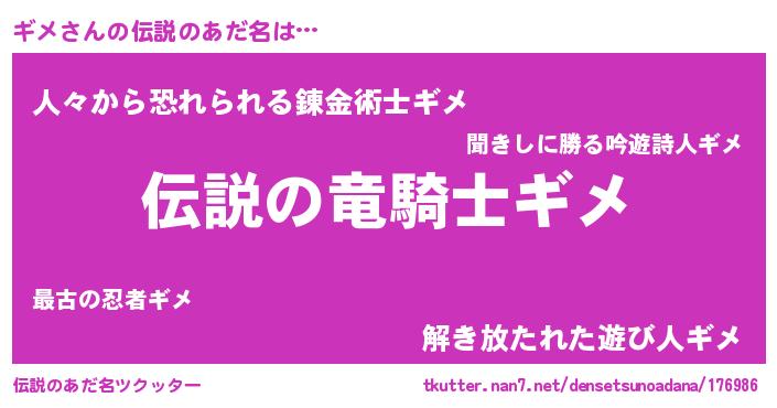 | ヒーロー風カッコイイあだ名 | 『スーパーギメ』『天空の使者ギメ』 |
