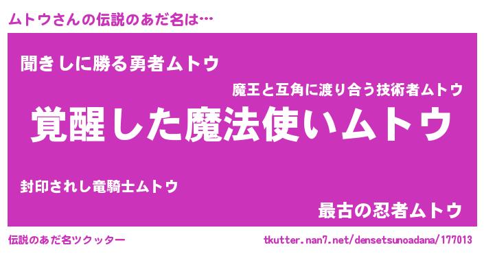 | 女子向けラノベタイトル風あだ名 | 『ムトウ様がみてる』『ムトウの契約王妃』 |