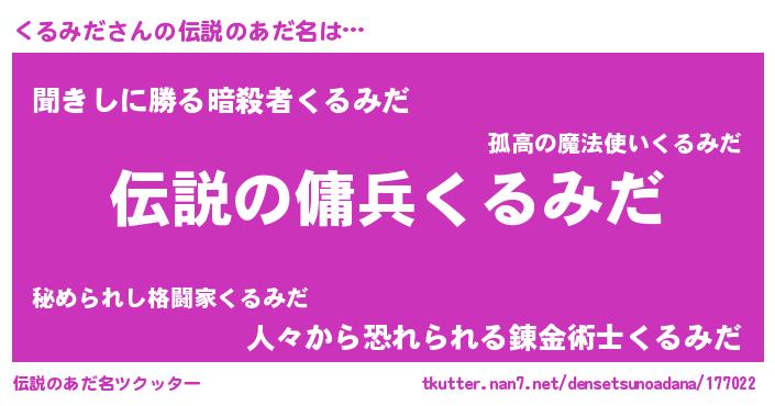 | ヒーロー風カッコイイあだ名 | 『スーパークルミダ』『ネオクルミダ』 |