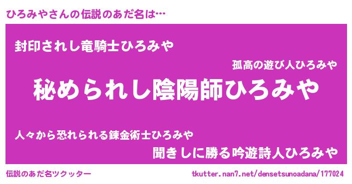 | ヒーロー風カッコイイあだ名 | 『ウルトラ戦士ヒロミヤ』『仮面ヒロダー』 |