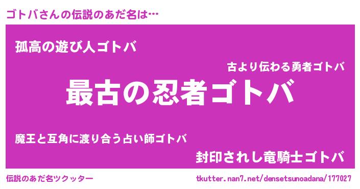 | 意味不明あだ名 | 『ゴトバフォーエバー』『ペロリンゴトバ』 |