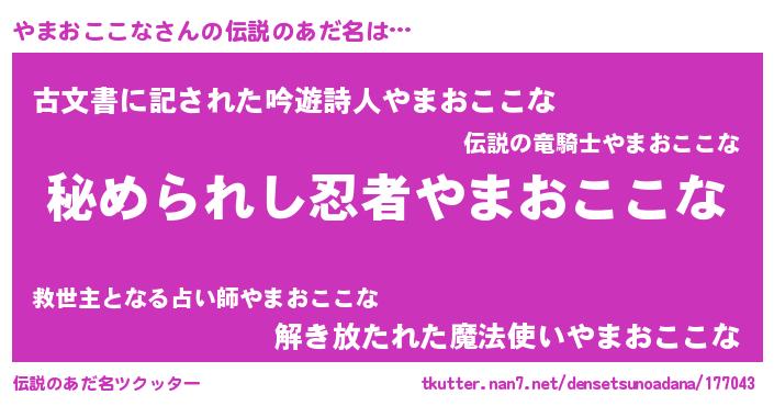 | 欧米人風あだ名 | 『やまおここなクリステル』 |
