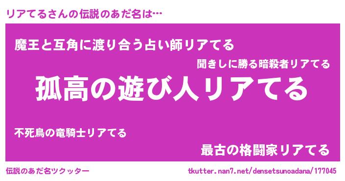 | ヒーロー風カッコイイあだ名 | 『ウルトラ戦士リアテル』『幻影騎士リア』 |