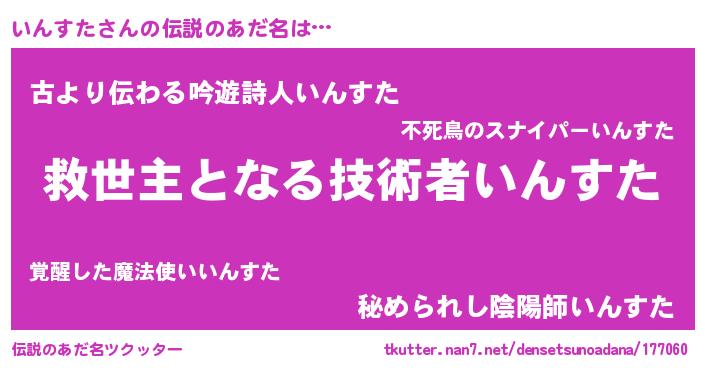 | ヘコむあだ名 | 『いんすた(笑)』『豆乳』『いんにー』 |
