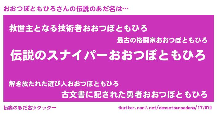 | 胡散臭い通販商品みたいなあだ名 | 『必ず成功する霊験あらたかなお札…その名も「おおつぼともひろ」』 |