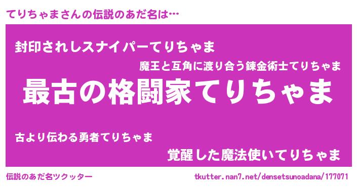 | ヒーロー風カッコイイあだ名 | 『ウルトラてりちゃまマン』 |