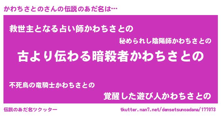 | 男性向けラノベタイトル風あだ名 | 『かわちさとのという概念が存在しない退屈な世界 』 |