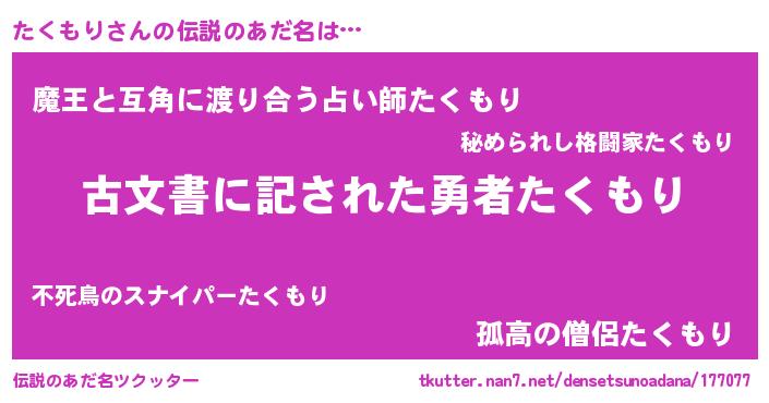 | 意味不明あだ名 | 『住所不定無職たくもり(71歳)』 |