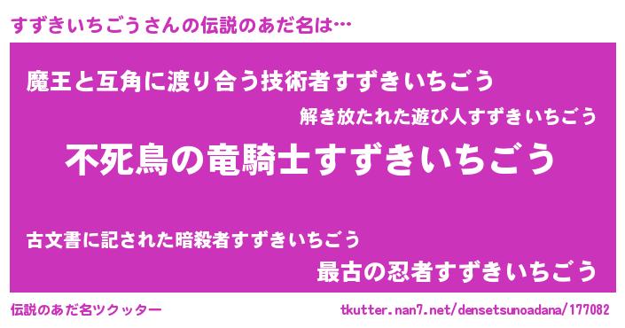| 男性向けラノベタイトル風あだ名 | 『スズキイチゴウアートオンライン』 |