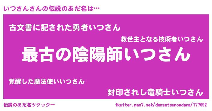 | ヒーロー風カッコイイあだ名 | 『ウルトラいつさんマン』『ネオイツサン』 |