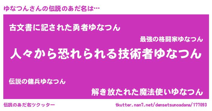 | 意味不明あだ名 | 『住所不定無職ゆなつん(12歳)』 |