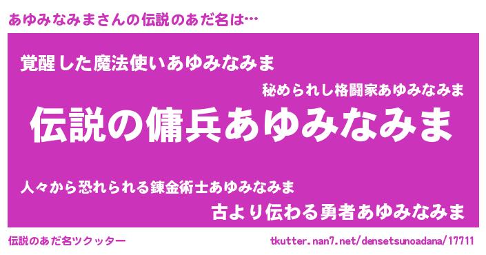 | 女子向けラノベタイトル風あだ名 | 『あゆみなみまなんてお断りですっ。』 |