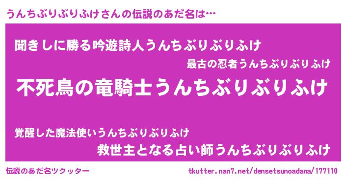 | 男性向けラノベタイトル風あだ名 | 『転生したらうんちぶりぶりふけだった件』 |
