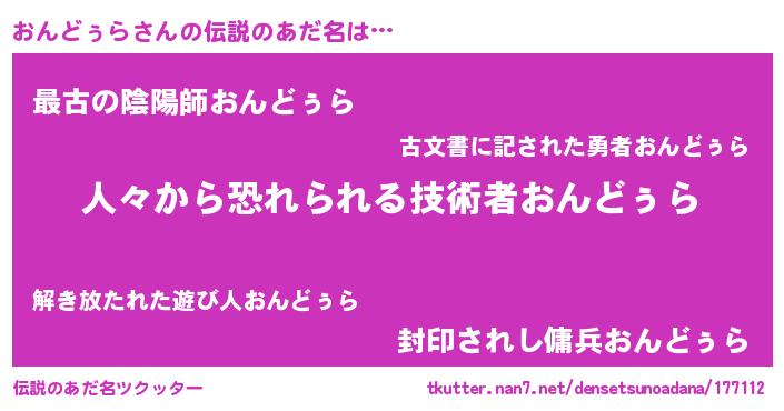 | 意味不明あだ名 | 『住所不定無職おんどぅら(6歳)』 |