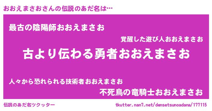 | 意味不明あだ名 | 『永久保存おおえまさお』 |