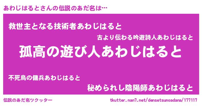 | 意味不明あだ名 | 『自称あわじはると』 |