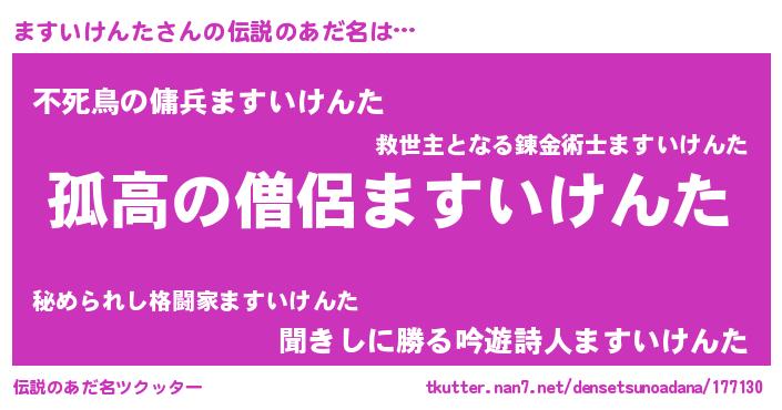 | 意味不明あだ名 | 『とにかく怪しいますいけんた』 |
