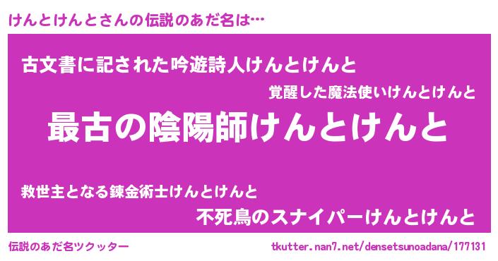 | 意味不明あだ名 | 『住所不定無職けんとけんと(98歳)』 |