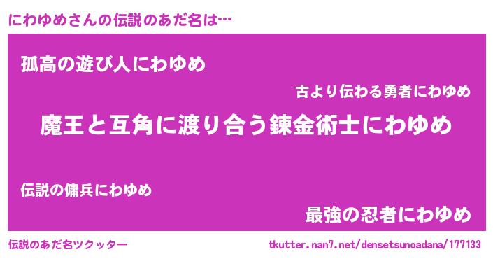 | ヒーロー風カッコイイあだ名 | 『ウルトラ戦士ニワユメ』『炎刃騎士ニワ』 |