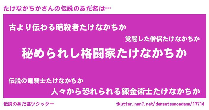 | 女子向けラノベタイトル風あだ名 | 『たけなかちかの雑貨屋さん』 |
