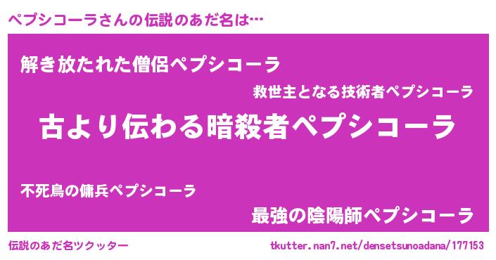 | 胡散臭い通販商品みたいなあだ名 | 『来世でも幸せになれる健康食品…その名も「ペプシコーラ」』 |