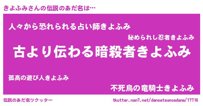 | 胡散臭い通販商品みたいなあだ名 | 『来世でも幸せになれる健康食品…その名も「きよふみ」』 |