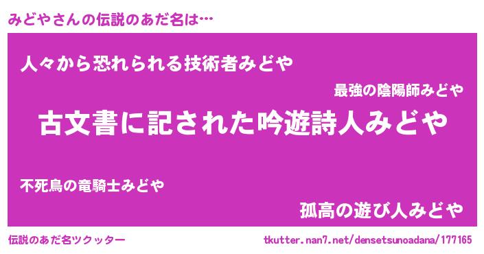 | ヘコむあだ名 | 『みどや(小並感)』『みどお』 |