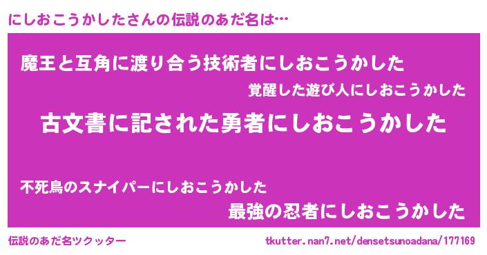 | ヒーロー風カッコイイあだ名 | 『ネオニシオコウカシタ』『炎刃騎士ニシ』 |