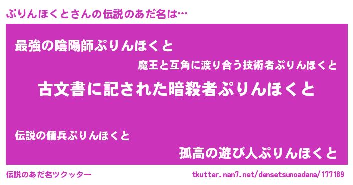 | 意味不明あだ名 | 『住所不定無職ぷりんほくと(43歳)』 |