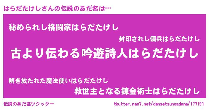 | 意味不明あだ名 | 『永久保存はらだたけし』 |