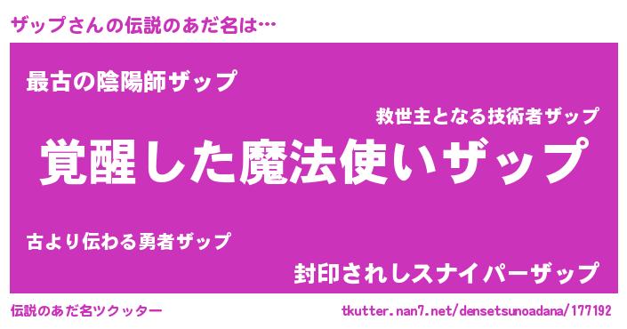 | 男性向けラノベタイトル風あだ名 | 『ザップ~年齢イコール彼女いない歴の魔法使い~』 |